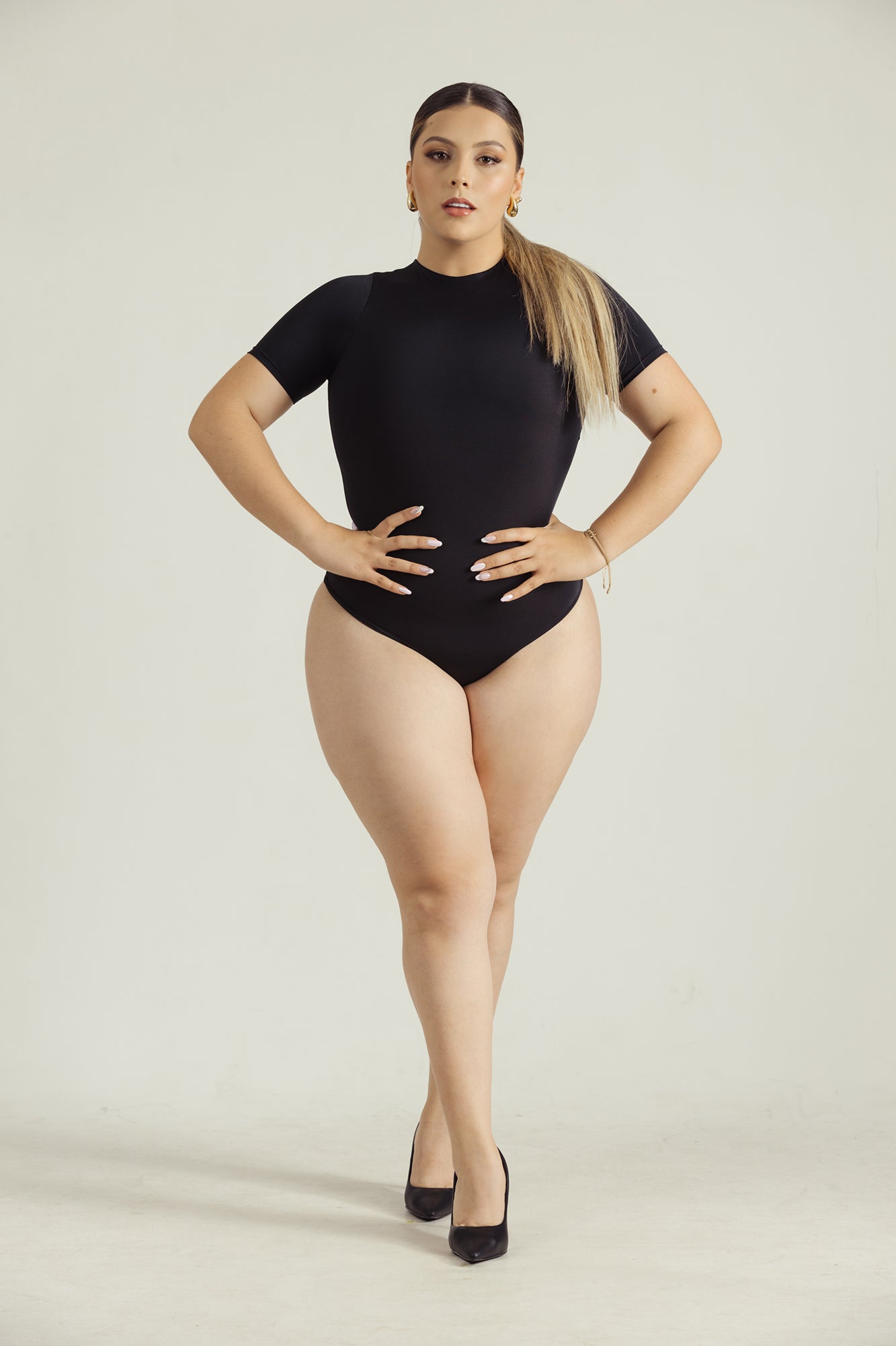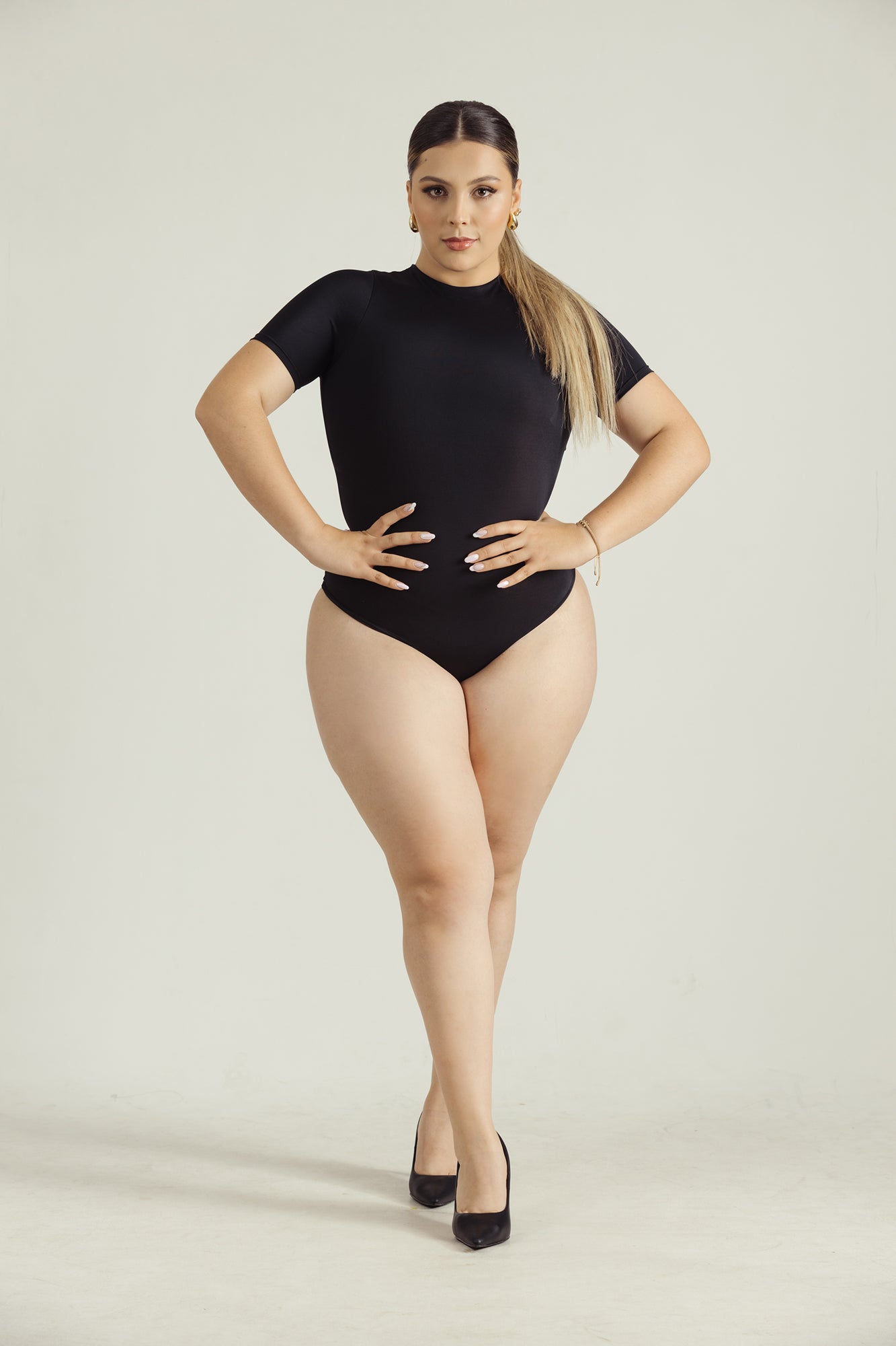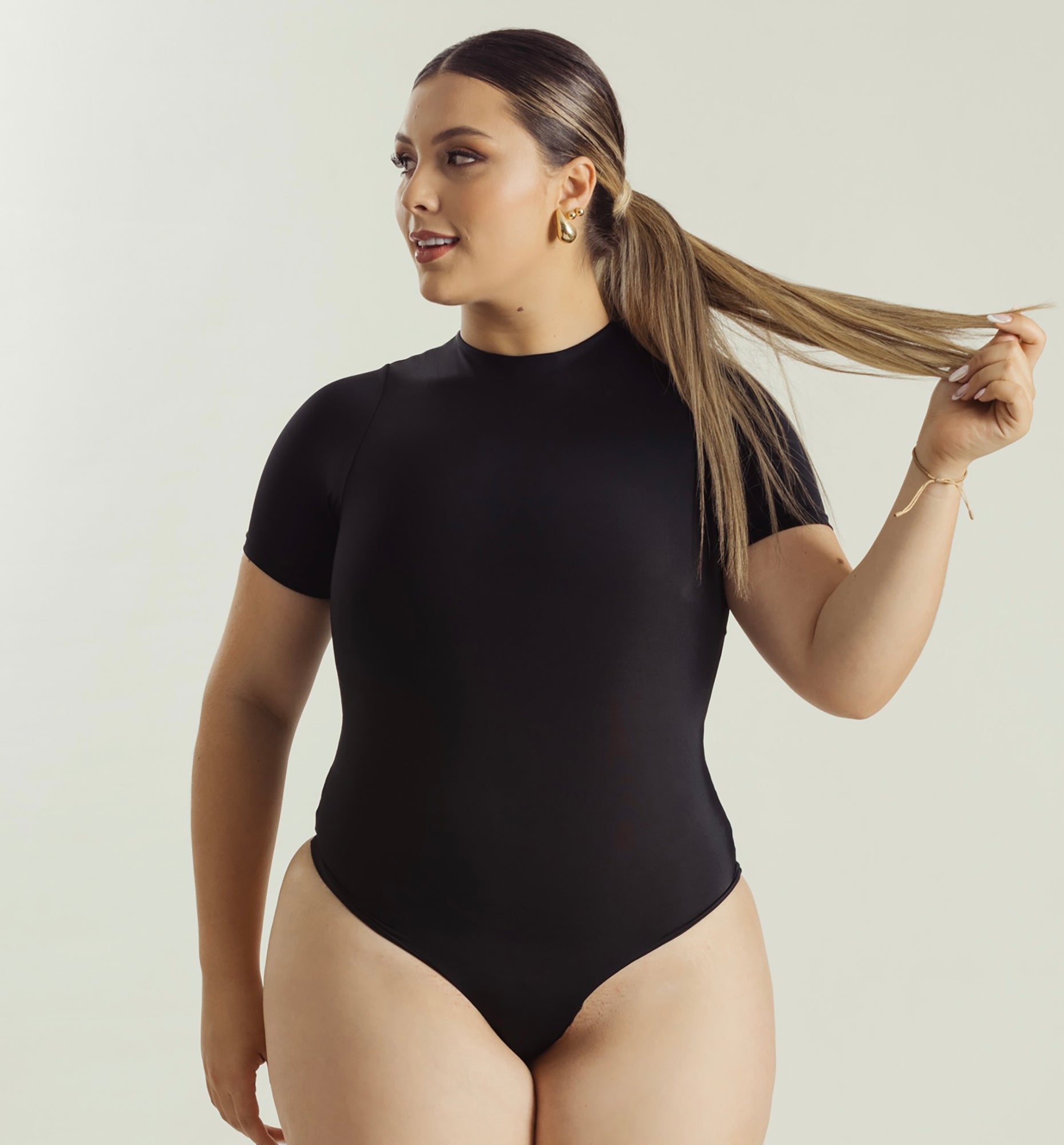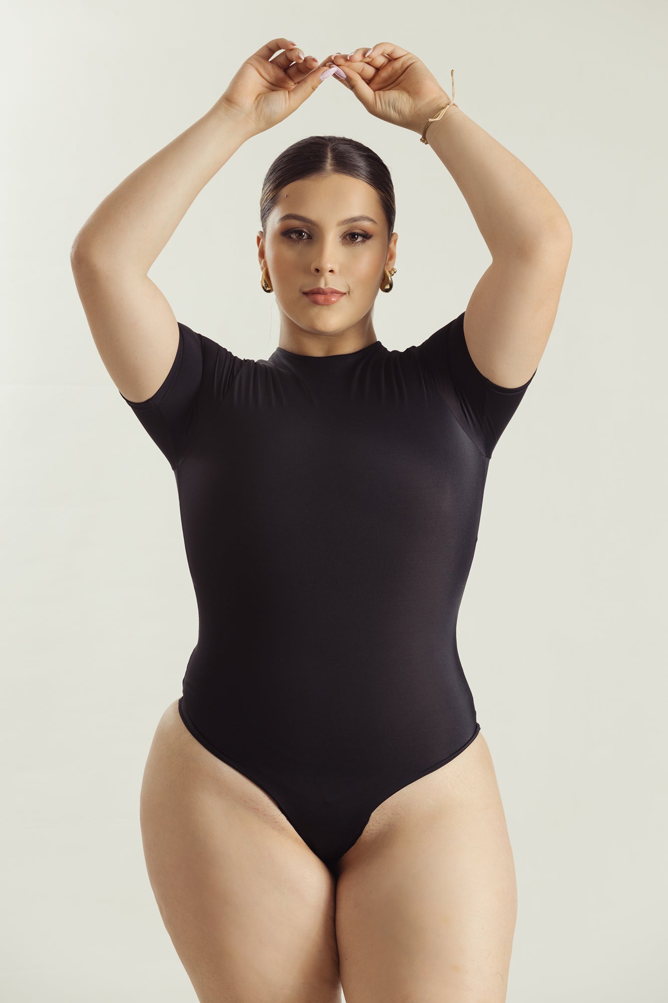El body de manga corta se fusiona con tu piel gracias a su tela inteligente que estiliza el abdomen y define la cintura.