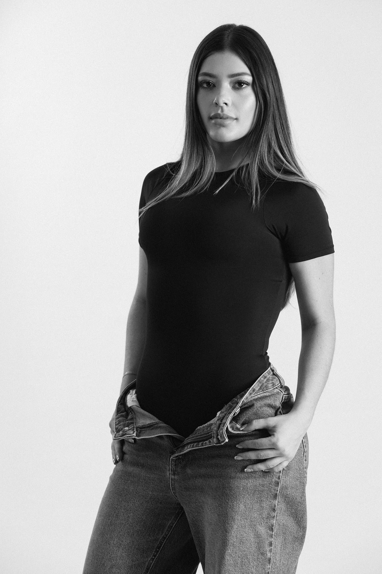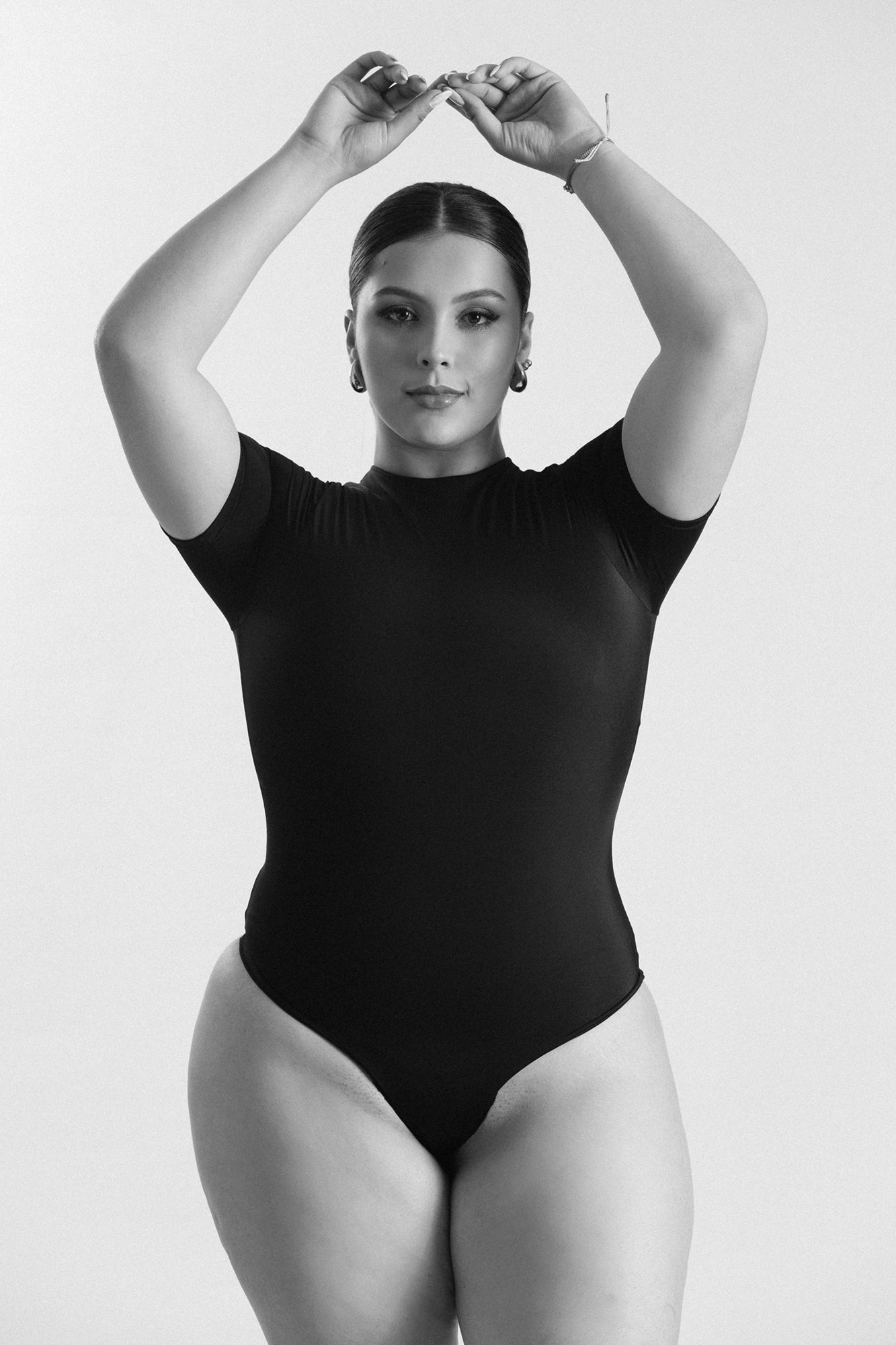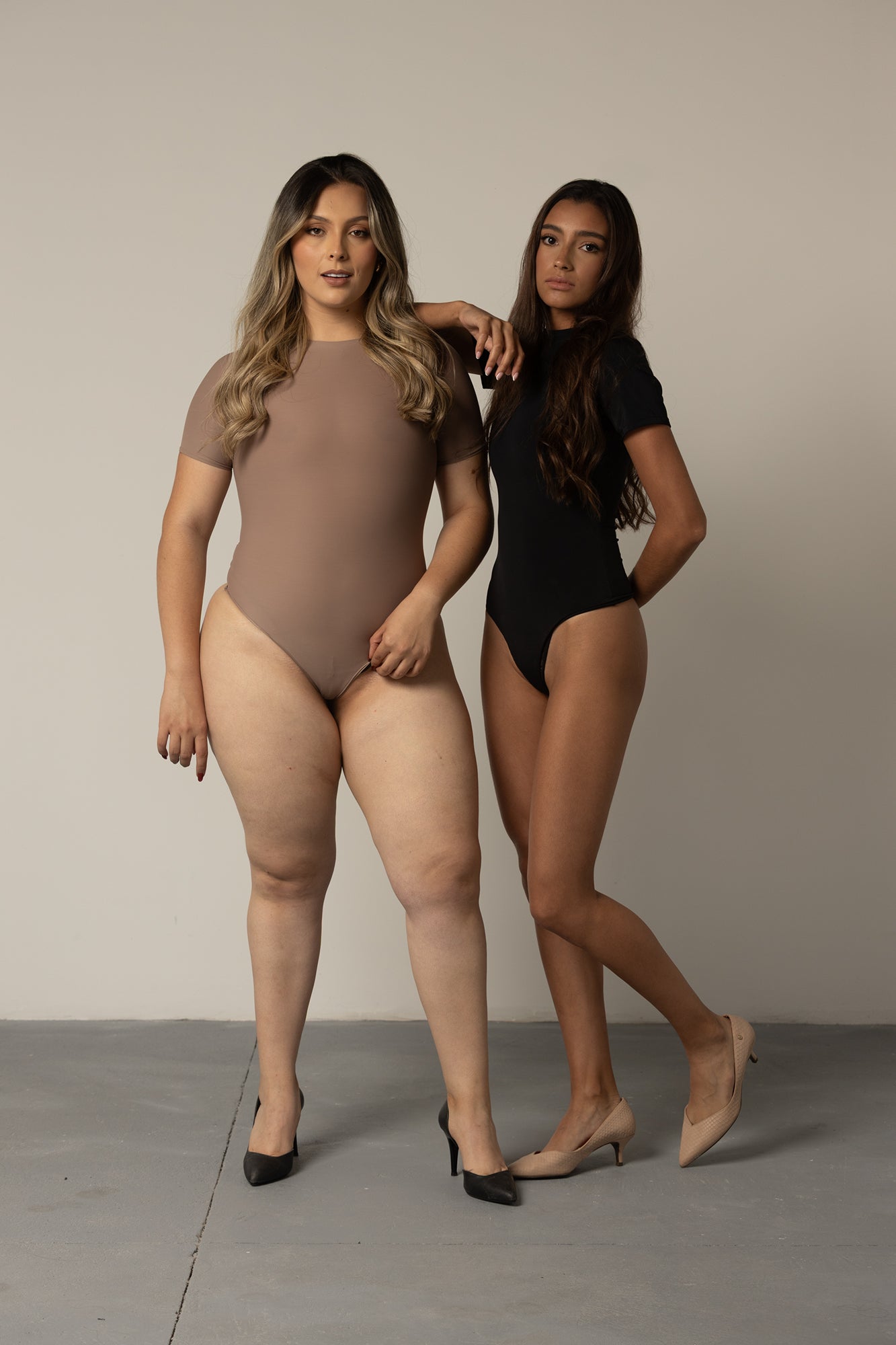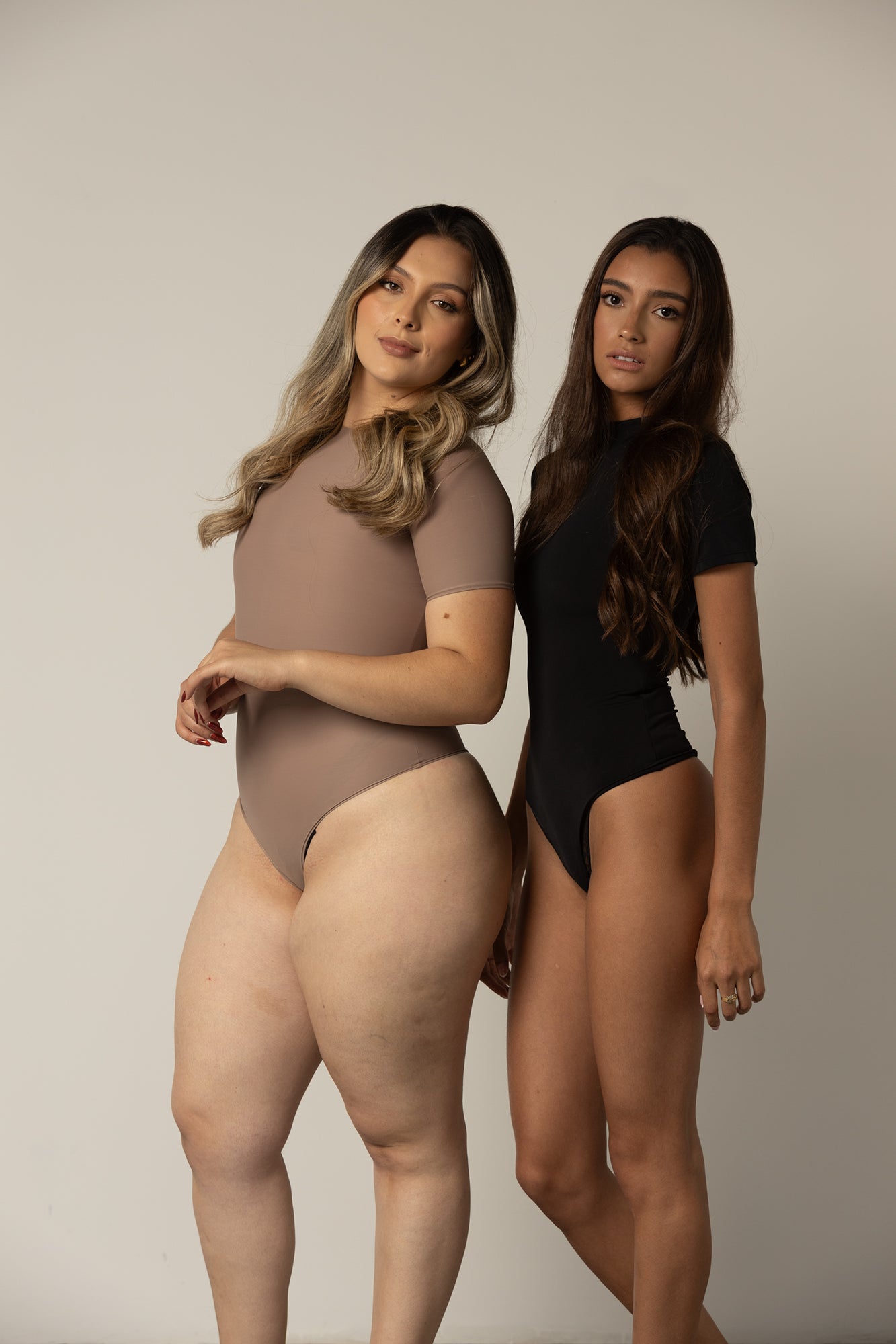 El body de manga corta se fusiona con tu piel gracias a su tela inteligente que estiliza el abdomen y define la cintura.