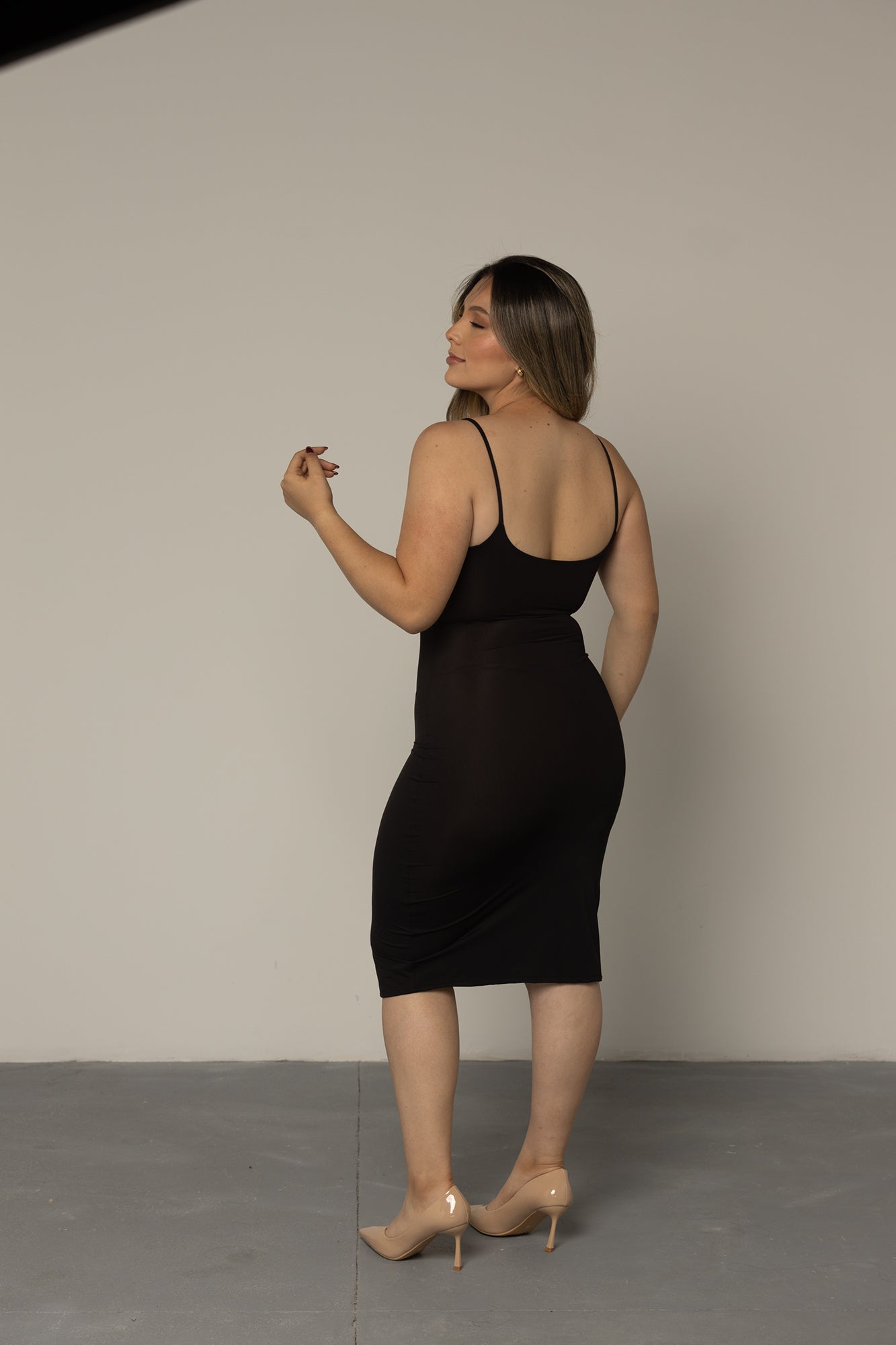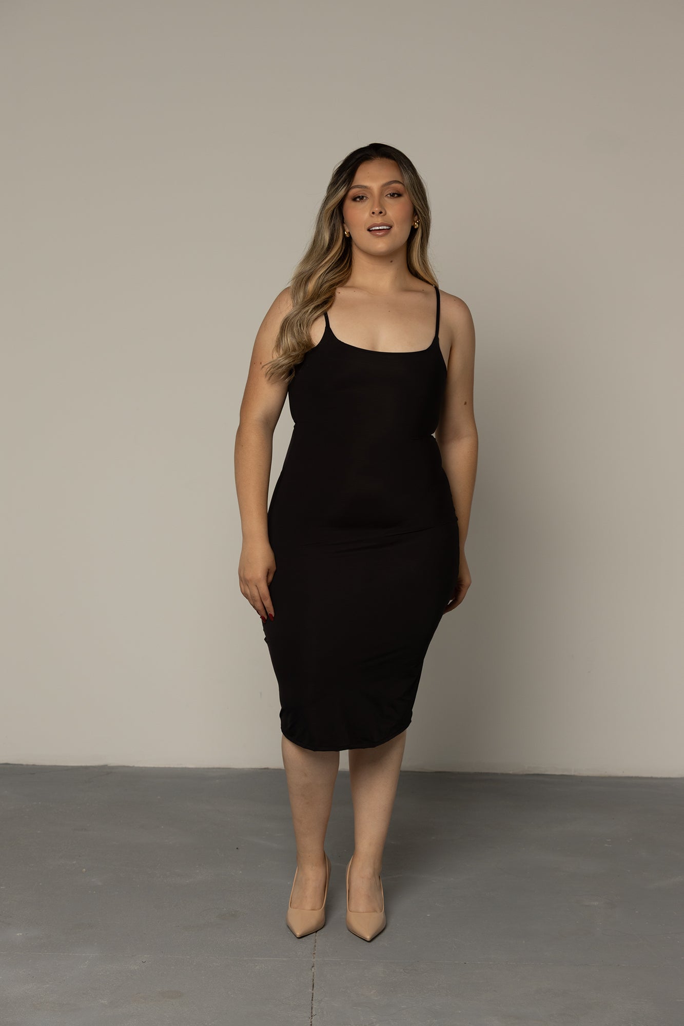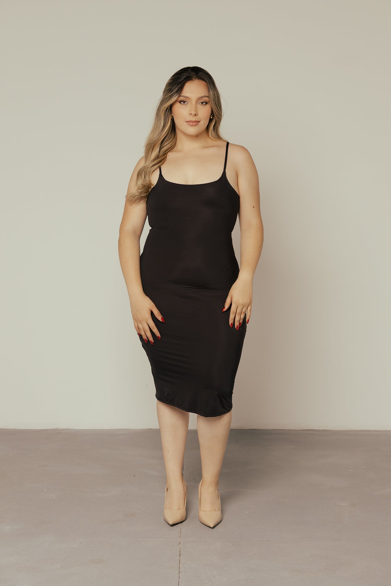 Nuestro vestido de tiras con tela inteligente acompaña cada movimiento mientras define la figura de forma natural.